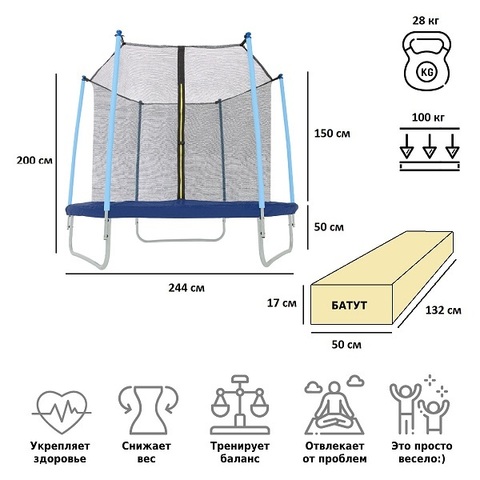 | Диаметр батута: | 8 футов (244-252 см) |