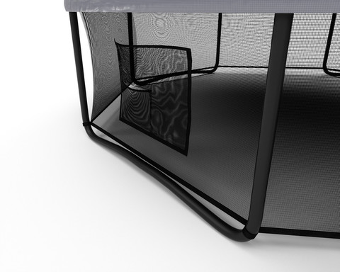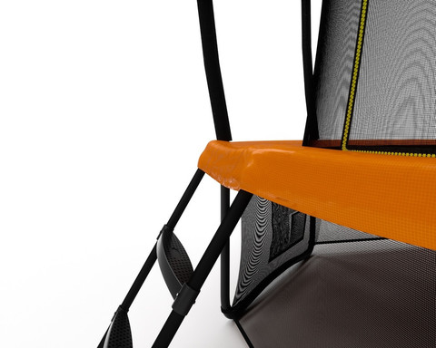 Надежная рама сделаны из оцинкованной стали с двойной порошковой окраской. Они обеспечивают устойчивое положение батута на любом типе покрытия. Максимальную безопасность обеспечивает защитная сетка из высокопрочного нейлона плотностью 90 гр/м², подушка безопасности толщиной 21мм и верхние стойки в мягких чехлах из поролона. В качестве материала прыжковой поверхности используется прочный полипропилен.
