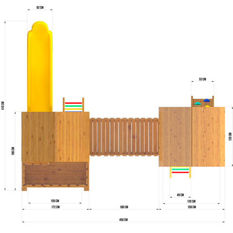 Габариты площадки (ДхШхВ): 450 см х 410 см х 380 см.