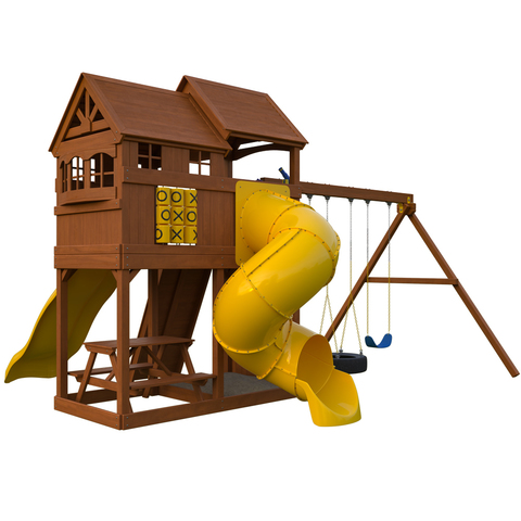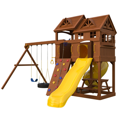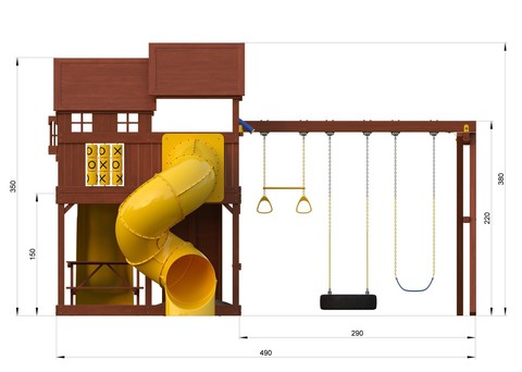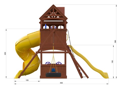 Детская Игровая Система New Sunrise c винтовой горкой. Площадка поставляется с зеленой горкой в комплекте! В базовую комплектацию игрового комплекса "New Sunrise" включены 5 съемных детских качелей, которые можно комбинировать на Ваше усмотрение! Детский городок изготовлен из северной древесины хвойных пород, обработанной безопасной декоративно-защитной пропиткой. Технология значительно увеличивает срок службы конструкций, повышает прочность древесины, защищает её от гниения и грибков. Обработка придаёт дереву приятный оттенок, проявляет и подчёркивает его текстуру. Используемая пропитка не содержит токсичных компонентов, экологична и абсолютно безопасна для ребёнка. Состав прошёл санитарно-эпидемиологическую экспертизу в Центре гигиены и эпидемиологии в г. Москве.
