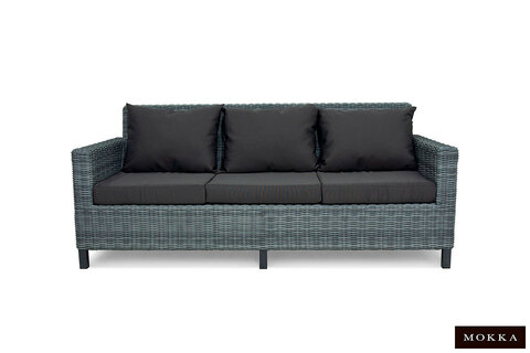 Спинки, боковины и основания мебели выплетаются в ручном режиме. В качестве мягкой основы кресел и дивана используются темно-серые подушки, оформленные в классическом стиле. Выполнены из мягкой гипоаллергенной ткани, не прихотливой в уходе. Конструкция стола представляет собой жесткий плетеный каркас с прочной столешницей. Универсальный оттенок мебели прекрасно гармонирует с дизайном гостиных, террас и холлов загородных коттеджей.