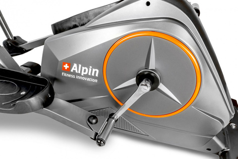 Alpin Mont Blanc X-180 - Среднегабаритный высокотехнологичный магнитный эллипсоид с задним приводом, вобравший в себя массу самых современных инноваций. Конструкция рамы построена на основе анатомических особенностей человека, которая предусматривает оптимальное положение рук, ног и торса по отношению к педалям и рукояткам. При этом система сбалансирована под пользователя ростом до 180см. Расстояние между педалями (так называемый Q-Фактор) составляет всего 19 см - это одно из самых минимальных значений для эллипсоидов с задним приводом.