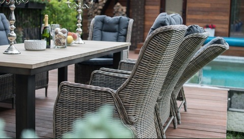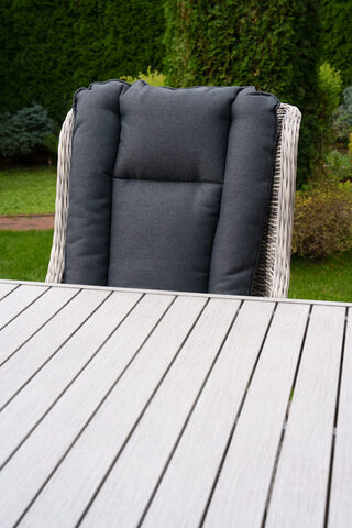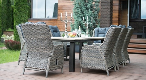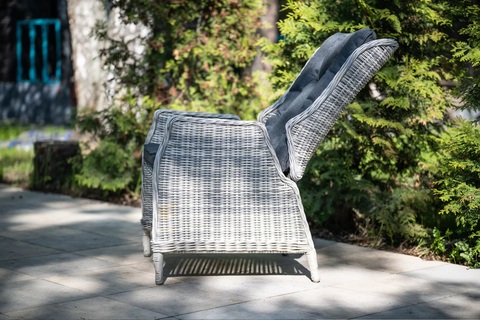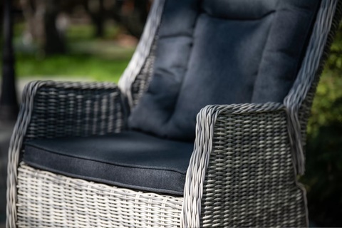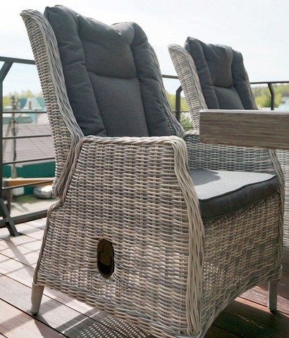 Каркас кресел и стола изготавливается из алюминия. Этот металл легкий, не боится коррозии. Благодаря каркасу, изготовленному из алюминия, комплект мебели выдерживает большой вес, при этом отличаясь легкостью и высокой прочностью. Покрытие кресел - искусственное пластиковое плетение имитирующее ротанг отличается высокой прочностью, износостойкостью и долговечностью. Спинка у кресла откидная, можно регулировать положение для достижения максимального комфорта.