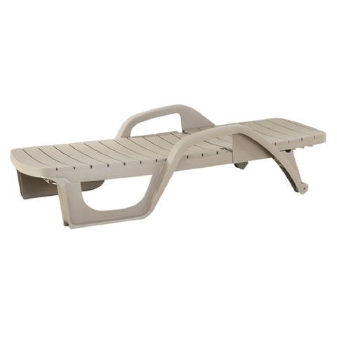 Лежак имеет относительно легкую массу по сравнению с другими моделями - весит 11.68 кг, отличается дизайном и неприхотливостью при эксплуатации. Шезлонг Riviera бежево-серый: