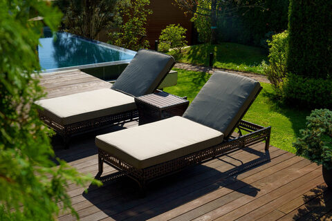 Шезлонг лежак КОРСИКА можно использовать в разных локациях, для отдыха на открытом воздухе также в закрытом помещении у бассейна.