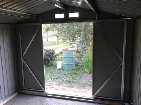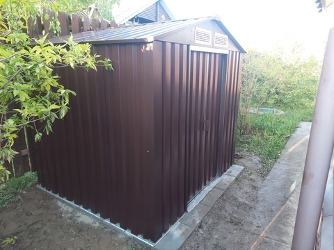 Металлический сарай собирается на предварительно подготовленной плоской и ровной площадке. В качестве основания может быть деревянный помост или ровно уложенная тротуарная плитка. Желательно чтобы основание было жестким в плоскости во избежание деформации каркаса, и как следствие затрудненного закрывания дверей в дальнейшем.