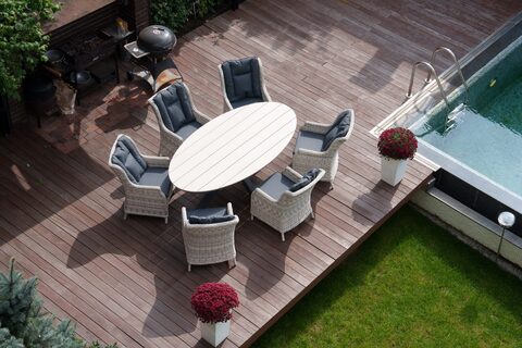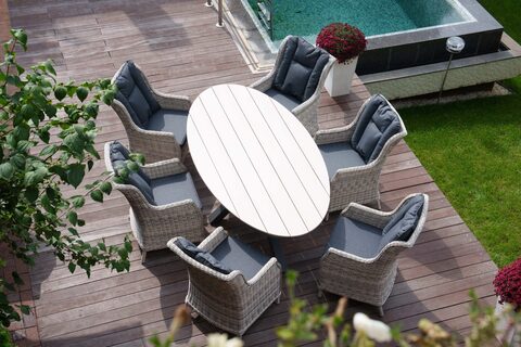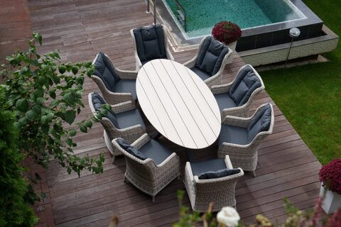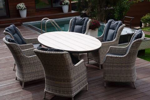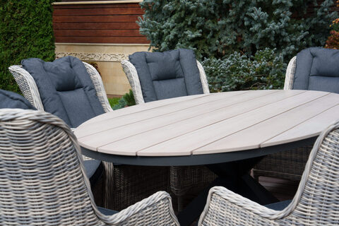 Стол имеет красивую текстуру дерева. Столешница изготовлена из древесно-полимерного материала polywood, каркас — алюминиевый. Стол ЛУГАНО можно устанавливать в самых разнообразных местах: на летних верандах, садовых площадок и под открытым небом – ему нипочем капризы природы.