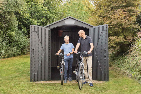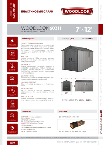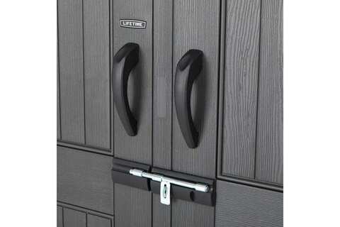 От инструментов и оборудования до хобби и проектов — правильное решение для хранения поможет организовать ваш приусадебный участок. Если вы решите купить сарай Lifetime WoodLook 7x12, то обязательно оцените его лаконичный дизайн и прочную конструкцию, которая предлагает универсальное место для хранения ваших вещей и освобождает ценное место, например, в вашем гараже. Этот современный хозблок идеально подходит для организации хранения газонных и садовых инструментов, спортивного инвентаря и упрощает доступ к куче разных вещей, которые раньше были просто разбросаны по участку. Расширьте свои возможности хранения с помощью шести защелкивающихся настенных крючков, которые можно разместить в нескольких заранее определенных местах на стене без необходимости использования винтов или дополнительного оборудования. Регулируемая по высоте настенная полка и две угловые дают вам дополнительное пространство для хранения мелких предметов. Текстура Rough Cut™ напоминает древесину на вид и на ощупь без необходимости покраски. Два боковых окна обеспечивают яркое внутреннее освещение днем. Двери запираются и открываются на 180 градусов для удобного перемещения в сарае и из него. Lifetime Modern Shed предлагает стильное решение для ваших потребностей в хранении.