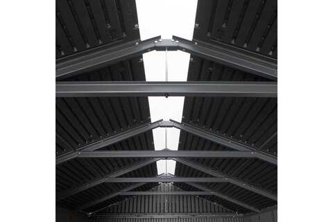 - Стальные фермы для тяжелых условий эксплуатации обеспечивают дополнительную прочность крыши почти до 200 кг/м2