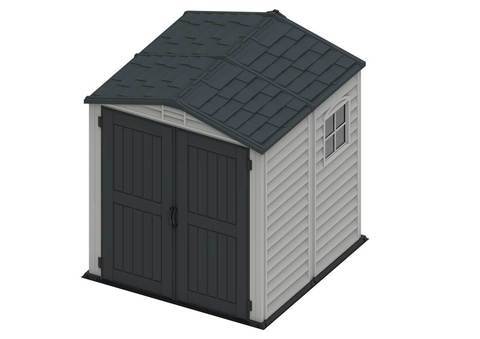 Компактный пластиковый сарай, который уместится на любом дворе. Конструкция имеет монолитный виниловый пол и не требует фундамента. Прочный металлический каркас позволяет выдерживать значительный вес сугробов. Пластик стен достаточно прочный, чтобы на него можно было монтировать полки или вещать инструменты и мелкую садовую технику.