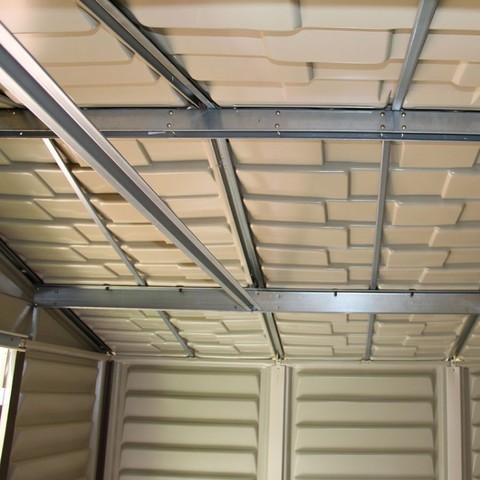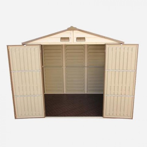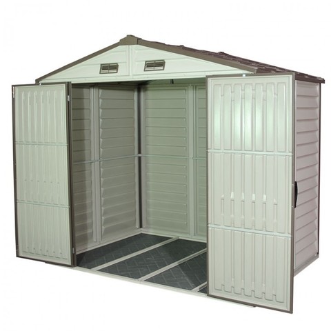 Прочный и вместительный пластиковый сарай - идеальная замена большой кладовой комнаты. 13,5 куб.м свободного пространства позволит Вам надежно хранить уборочную технику, вещи и мототехнику прямо рядом с домом. Хранилище выполнено из прочного винила с армированным металлическим каркасом. Такая конструкция позволяет переоборудовать пластиковый хозблок по вашему вкусу - повесить полки, разместить инструменты. Также он может использоваться в качестве детского игрового дома или малой мастерской.