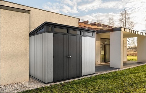 Новинка 2018 года. Имеет скатную конструкцию крыши. Конструкция крыши сарая Artisan способна выдержать снеговую нагрузку более 100 кг. Наверху сарая предусмотрены окна для хорошего освещения. Изготовлен хозблок из панелей DUOTECH — текстура натуральной состаренной древесины придает благородный внешний вид данному сараю. Можно красить! Теперь Вам не надо тратить время на поиск сарая, цвет которого подходит к Вашему дому, — Вы можете купить готовый сарай Артисан и покрасить его в любой, нужный Вам, цвет!