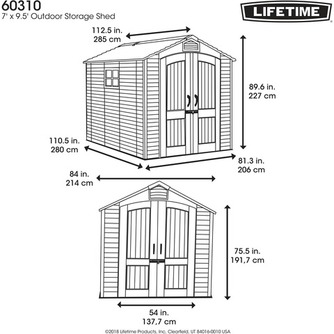 Просторный сарай повышенной прочности LifeTime 7x9,5 идеально удовлетворит Ваши потребности в условиях хранения. Сделанный из прочного двухслойного полиэтилена высокой плотности по технологии blow molding и с использованием стали, этот пластиковый сарай не требуют частого технического обслуживания, и остаётся в идеальном состоянии долгие годы.