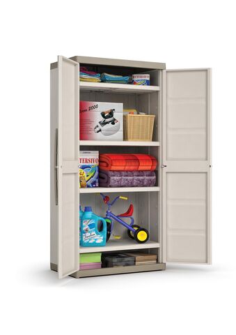 Температурный режим использования -5°C to +40°C. Это способствует долгому сроку службы и делает пластиковые шкафы подходящей мебелью для хранения хозяйственного инвентаря, садовой мебели, различного оборудования, бытовых аксессуаров и предметов в помещении.