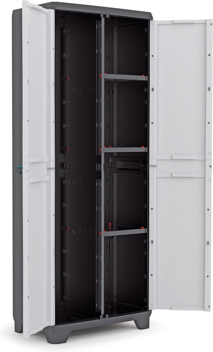 Благодаря своему лаконичному дизайну Linear является идеальным решением для меблировки ваших помещений. Пластиковый шкаф оснащен регулируемыми полками с максимальной нагрузкой 10 кг каждая и отсеком во весь рост шкафа. Ручки шкафа с удобным захватом, шкаф оснащен замком, который можно запирать. Регулируемые ножки помогут выставить шкаф ровно. Простота сборки делает этот шкаф чрезвычайно универсальным решением.