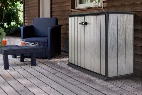 Уличный пластиковый шкаф Patio Store Keter имеет простой и элегантный дизайн, универсальный цвет и текстуру поверхности, напоминающую натуральную древесину. Шкаф будет незаменим всюду там, где необходимо организовать садовые принадлежности или предметы. Просторный шкаф, идеально подходит для хранения патио, аксессуаров и подушкек, оборудования для бассейнов, садовые инструменты, или газонокосилки. Шкаф имеет запираемые двери. Дополнительная полка может быть легко установлена с помощью входящего регулируемого кронштейна.