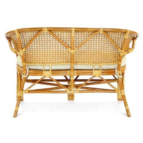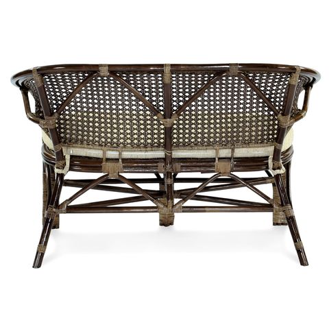 Диван из ротанга с ажурным плетением из кофейного комплекта Пеланги. Настоящая классика плетеной мебели из ротанга. Диван не разборный. Диван укомплектован подушкой из плотной ткани рогожка. Чехол на подушке съемный. Сиденье выполнено сплошным плетением ротанговой коры, что позволяет использовать диван без подушки.