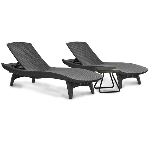Плетение под искусственный ротанг, из которого выполнен шезлонг Pacific полностью повторяет плетение комплектов пластиковой мебели производства группы компаний KETER, представленных в нашем интернет-магазине. Позвоните нам и мы сможем помочь вам подобрать уличную мебель и другие сопутствующие товары, предложим скидку на большие заказы и организуем доставку по всей России.