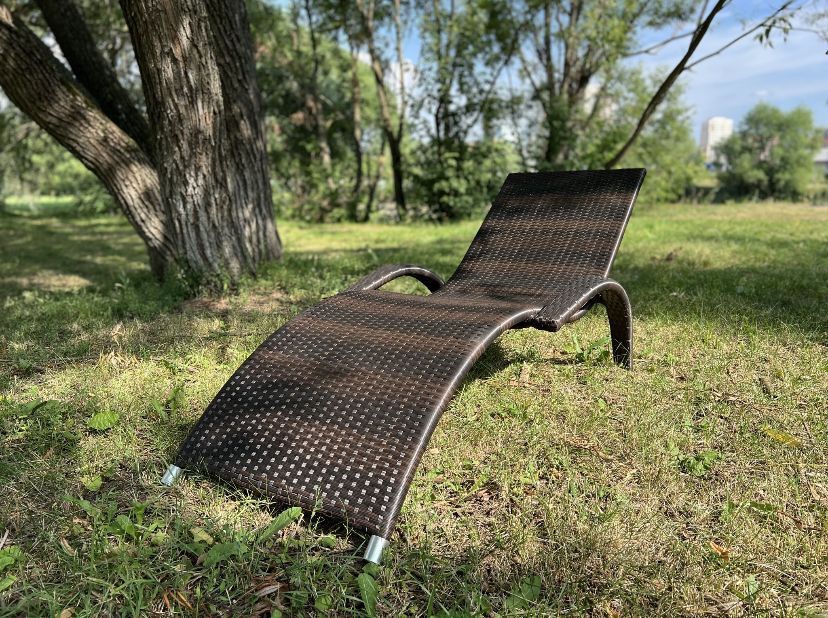 Шезлонг простой и лаконичный, что не мешает оставаться ему стильным и респектабельным. Сдержанность дизайна компенсирует элегантный материал исполнения и фурнитура. Удобные подлокотники обеспечат дополнительный комфорт. Каркас изделия выполнен из алюминия, который делает его легким и надежным. Материал исполнения – искусственный ротанг, высококачественный синтетический материал, не уступающий по внешнему виду и тактильным свойствам натуральному ротангу. Вместе с тем, искусственный ротанг обладает повышенной износостойкостью и неприхотливостью к погодным испытаниям.