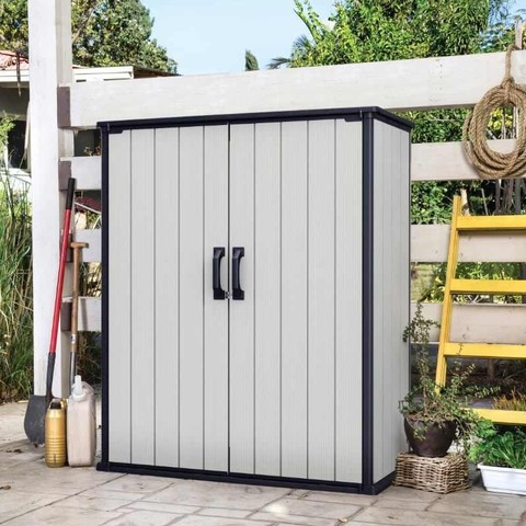 Уличный шкаф для хранения садового инвентаря Keter Premier High Store 1400 L. Практичная вещь для дачи или загородного дома. Подходит для хранения различного садового оборудования, газонокосилок, фильтров для бассейна, мусорных баков и многого другого. Позволяет размещать барбекю, мангал, газонокосилки, тележки, газовые баллоны, дрова и т. д. Вы можете использовать его и в профессиональной сфере, для хранения уборочного инвентаря в клининговой сфере.