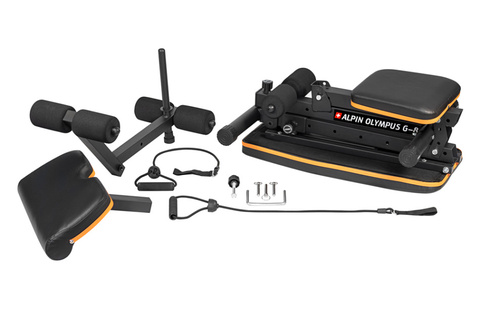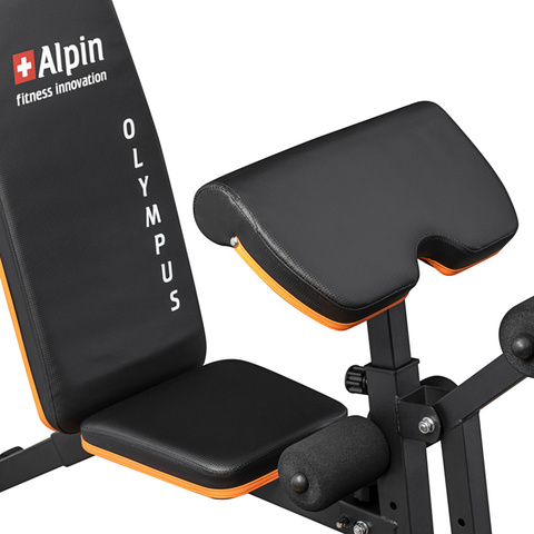 Силовая скамья Alpin Olympus G-8 с профилем 50*50 мм. и максимальным совокупным весом нагрузки 250 кг. За счет широких возможностей по регулировке скамью можно использовать как стандартную скамью для жима так и как скамью для упражнений с гантелями и скамью для пресса с отрицательным углом. Регулируемая скамья скота позволит вам качественно проработать мышцы битепсов. Скамья оборудована рычагом для тренировки ног с отягощениями. Регулировка спинки доступна в диапазоне от 0 до 135 градусов. Входящие в комплект эспандеры позволят вам разнообразить тренировки. Складная конструкция обеспечит минимум места для хранения.
