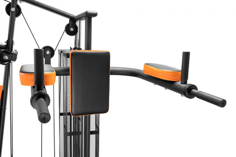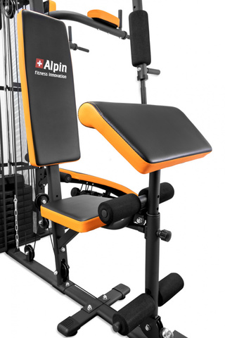Многофункциональный силовой комплекс Alpin Multi Gym GX-400 с утяжеленным стеком обеспечивает максимум функционала и подходит спортсменам практически любого уровня подготовки. В число станций входят верхняя и нижняя и тяги, жим от груди, жим от плеч, баттерфляй, пресс/спина, бицепс/трицепс, разгибание ног и отведение/приведение ног, брусья, упоры для отжимания, скамья для пресса, гантели. Малошумные весовые плиты в пластикате с совокупным весом 65 кг. обеспечивают широкий спектр нагрузок. Комфортные сиденья и спинка позволяют проводить тренировку в максимально удобном режиме. Высокопрочная рама выдерживает вес пользователя до 120 кг.