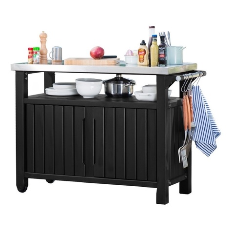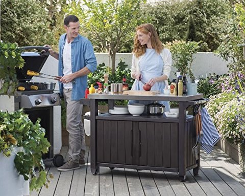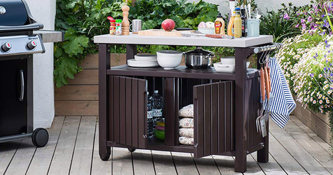 Компания KETER постоянно находится в поиске новых решений для дачного отдыха. Одной из новинок этого года стал мобильный стол для барбекю. Стильный и компактный стол из пластика со встроенной тумбой для хранения и металлической столешницей станет отличным помощником на веранде или уличной площадке.