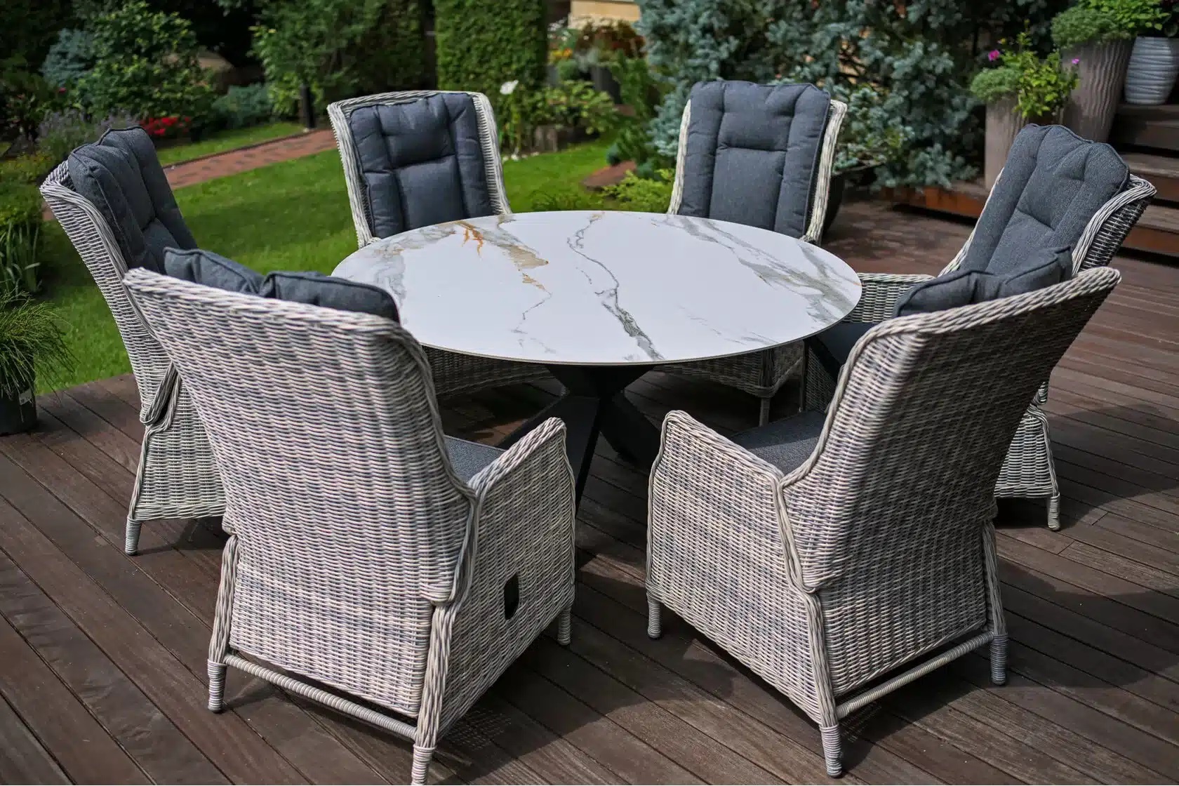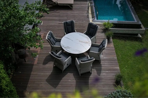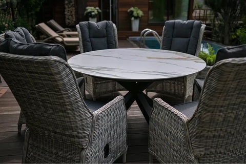 Столы одинаково хорошо подходят для размещения внутри дома и на улице — на крытых верандах, террасах, в зоне отдыха у бассейна или в летней кухне. Устойчивость к УФ-лучам и перепадам температуры делает их надёжным решением даже при интенсивной эксплуатации на открытом воздухе.