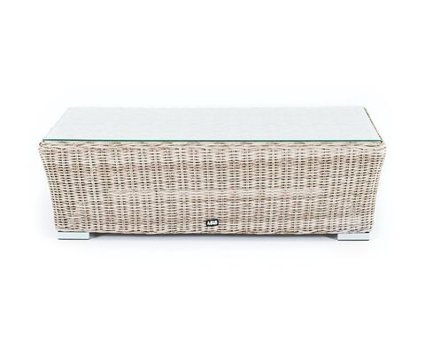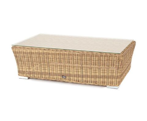 "Капучино", плетеный журнальный стол, алюминиевый каркас, круглый искусственный ротанг, ручное плетение, размер 1100х660х300 мм, цвет соломенный