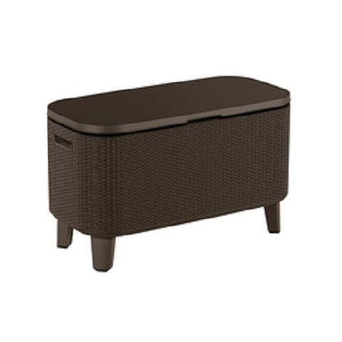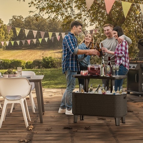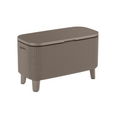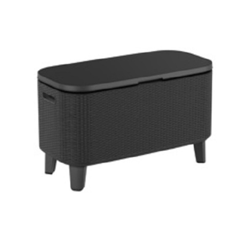 Сундук - бар Keter Bevy Bar. Теплая, классическая гамма цветов и оригинальная, подобная ротанговой, фактура поверхности придется по вкусу даже самым требовательным пользователям. Изготовлена из стойкой к воздействию УФ-излучения и погодных условий пластмассы. Очень легко чистится.