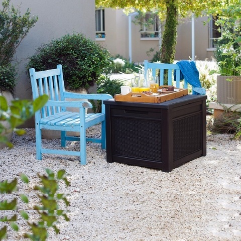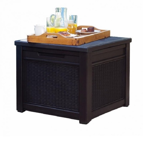Новинка от компании KETER - компактный столик под ротанг с внутренним хранением. Идеально подходит ко всем комплектам мебели в коричневом цвете, а так же отлично сочетается с балконными креслами, ведь его высота 59 см.
