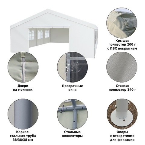 • Материал крыши: полиэстер 200 г с ПВХ покрытием