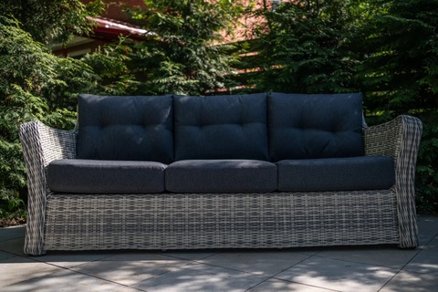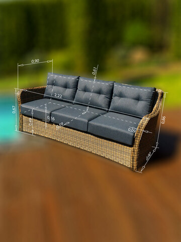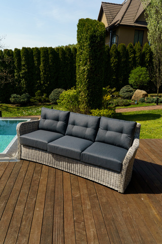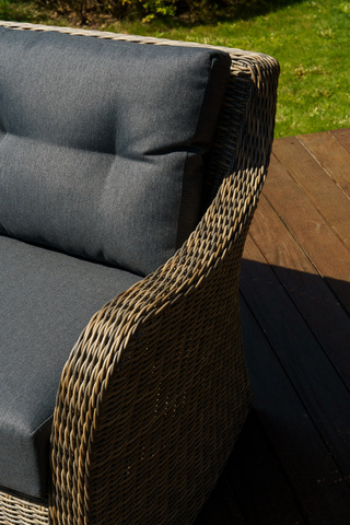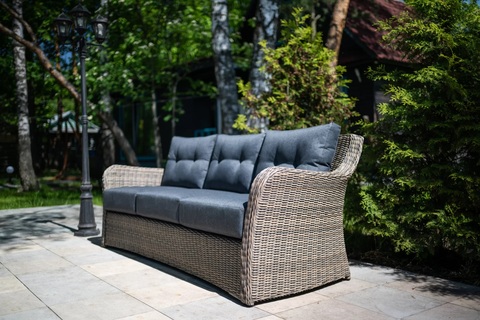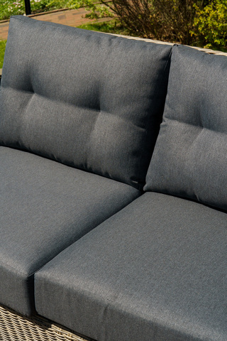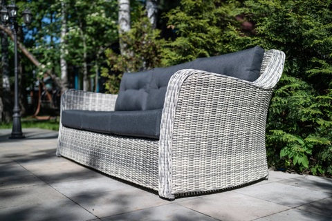 ВЕНЕЦИЯ 2-х местный диван можно устанавливать в самых разнообразных местах: на летних верандах, садовых площадках и под открытым небом. Это отличное приобретение для тех, кто предпочитает с максимальным комфортом отдыхать в загородном доме. Диван выполнен из искусственного ротанга и из прочного алюминиевого каркаса. В комплекте идут мягкие подушки (чехлы съемные) с водоотталкивающей пропиткой при небольшом дожде.