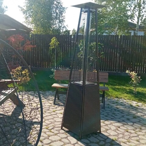 Благодаря пирамидальному корпусу этот обогреватель эффективно повышает температуру воздуха в диаметре пяти метров вокруг себя.