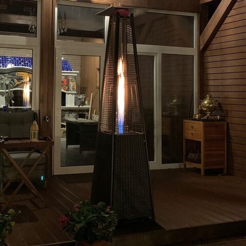Уличный газовый обогреватель WWT 13I Rotang Brown выполнен в форме усеченной пирамиды, оканчивающейся алюминиевым отражателем. Нижняя его половина закрытая, а верхняя представляет из себя прозрачную трубку из огнеупорного стекла, внутри которой горит пламя. Такой дизайн выглядит привлекательно сам по себе, а в сумерках он еще и создает особую, романтическую атмосферу.