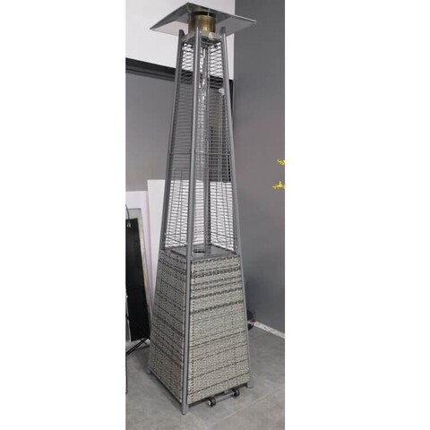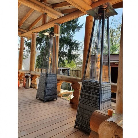 Уличный газовый обогреватель WWT 13I Rotang Grey выполнен в форме усеченной пирамиды, оканчивающейся алюминиевым отражателем. Нижняя его половина закрытая, а верхняя представляет из себя прозрачную трубку из огнеупорного стекла, внутри которой горит пламя. Такой дизайн выглядит привлекательно сам по себе, а в сумерках он еще и создает особую, романтическую атмосферу.