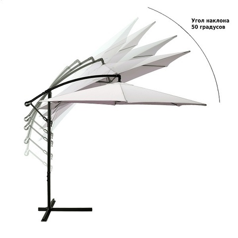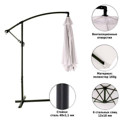 В комплекте с зонтом идет основание – крестовина, на которую для устойчивости зонта можно установить бетонные утяжелители (в комплект не входят) или привернуть ее через имеющиеся отверстия к полу.