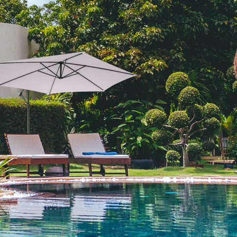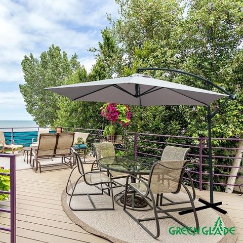 Уличный зонт Green Glade – это надежный и удобный элемент загородного участка или летнего кафе. Зонт можно использовать как во время ненастной погоды для защиты от дождя, так и в жаркий день, чтобы спрятаться от палящего солнца. Благодаря боковому расположению стойки под куполом можно установить любую пластиковую мебель: от дивана или шезлонга до обеденного стола со стульями.
