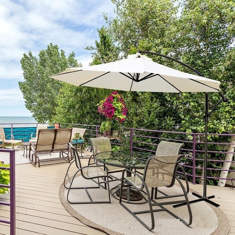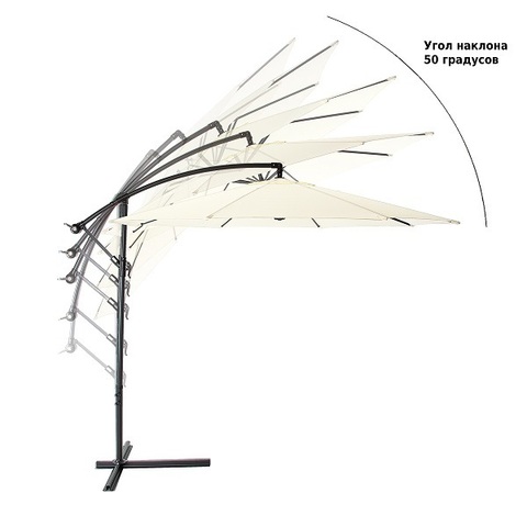 В комплекте с зонтом идет основание – крестовина, на которую для устойчивости можно установить бетонные утяжелители (в комплект не входят) или привернуть ее через имеющиеся отверстия к полу.