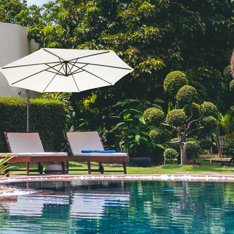 Большой зонт Green Glade – незаменим для отдыха на даче, загородном участке и около бассейна. Он защитит вас и ваших детей от яркого солнца и создаст комфортную тень. Купол зонта легко открывается с помощью лебедки. Благодаря боковому расположению стойки под куполом можно установить любую пластиковую мебель: от шезлонга до обеденного стола.