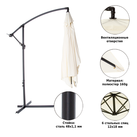| Тип зонта: | Зонты на боковой опоре |