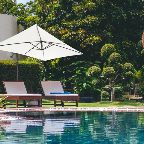 Уличный зонт Green Glade – это надежный и удобный элемент загородного участка или летнего кафе. Зонт можно использовать как во время ненастной погоды для защиты от дождя, так и в жаркий день, чтобы спрятаться от палящего солнца. Благодаря боковому расположению стойки под куполом можно установить любую пластиковую мебель: от дивана или шезлонга до обеденного стола со стульями.